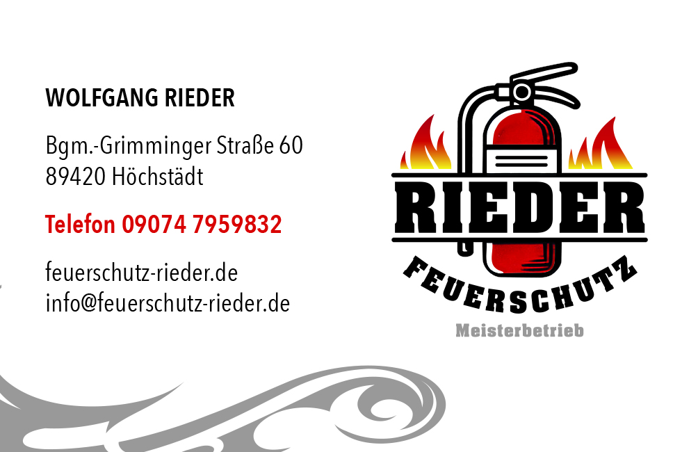 Feuerschutz Rieder Bgm.-Grimminger-Str. 60 89420 Höchstädt Tel.: +49 (0)9074 7959832 mail.: info@feuerschutz-rieder.de